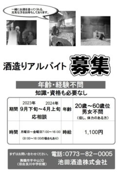 丹後天酒まつりを開催しました。 投稿日 2023年5月29日 更新日 2026年1月14日 著者 ikedasyuzou-admin カテゴリー お知らせ 2023年5月27日(土)に4年ぶりとなる「第7回丹後天酒まつり」を開催しました。 この祭りは丹後の酒蔵が同じ日に蔵開きを行い、それをツアーなどでめぐって頂こう、 というイベントです。 当日は天候にも恵まれ、多数の方にお越し頂きました。 この場を借りて厚く御礼申し上げます。 準備不足の所もございましたが、 今回のテーマであった「うまい酒・うまい料理・うまい空気、リアルの楽しさを味わってください」が少しは伝えられたかなと思っております。 来年も開催予定です。ぜひお越しください! この記事を書いた人 ikedasyuzou-admin 記事一覧