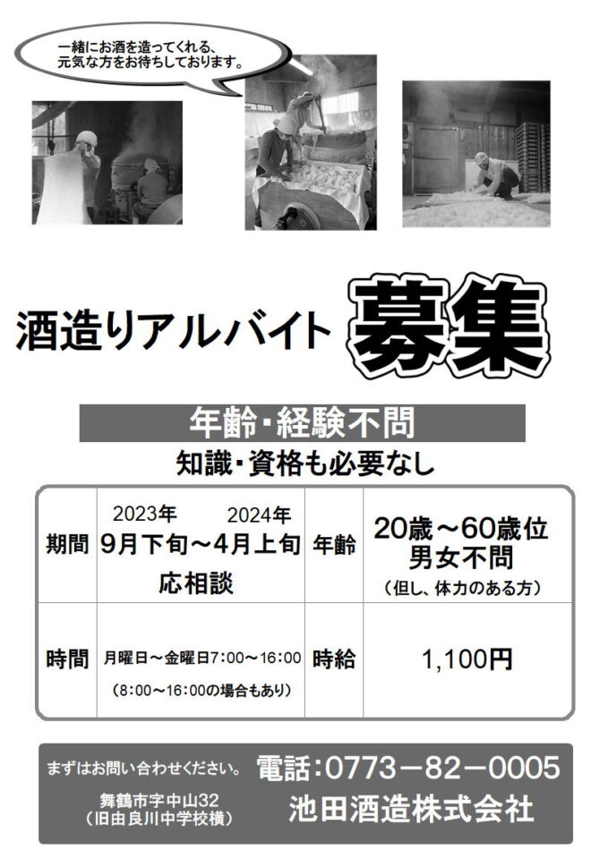 酒造りを一緒にしてくれる蔵人を募集しています。